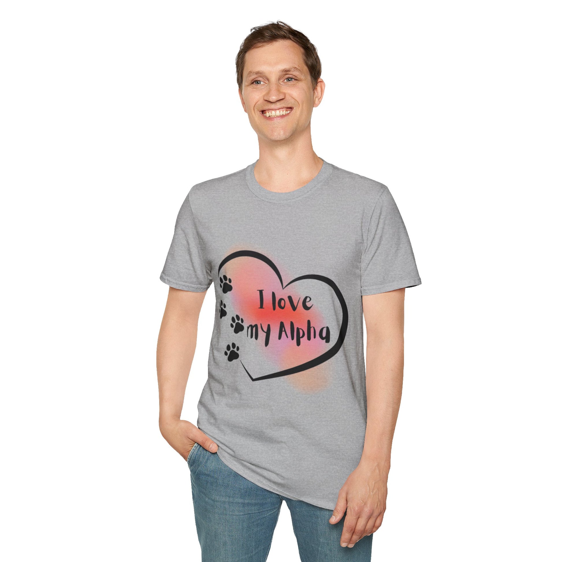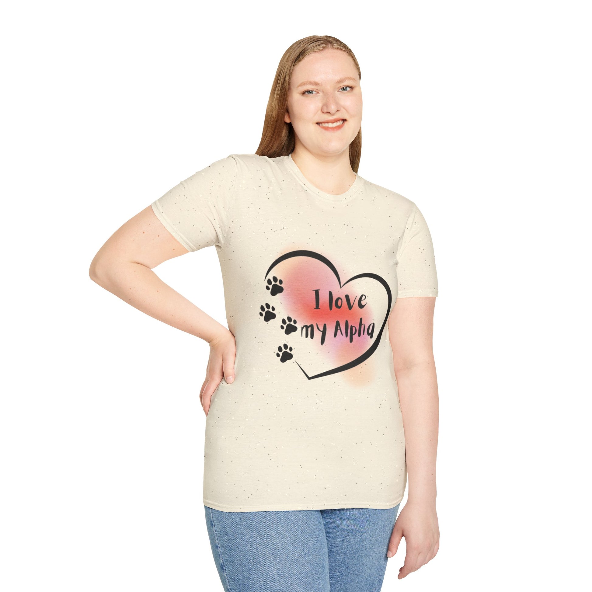 Soft, simple, and made to be lived in — this lightweight tee carries a quiet, affectionate message for anyone who cherishes their canine companion. A soft blush heart fades into the fabric, framed by a hand-drawn outline and playful paw prints that walk across the chest. The fit stays clean and uncomplicated so the design remains the focus, whether you’re out for a casual walk, curled up on the couch, or meeting other dog lovers at a weekend market. Breathable cotton and a tear-away label keep the shirt comfortable all day; the subtle natural flecks in lighter shades add a lived-in, honest look. Wear it when you want to speak less and feel more — a small, tender way to honor the bond with your “alpha.”